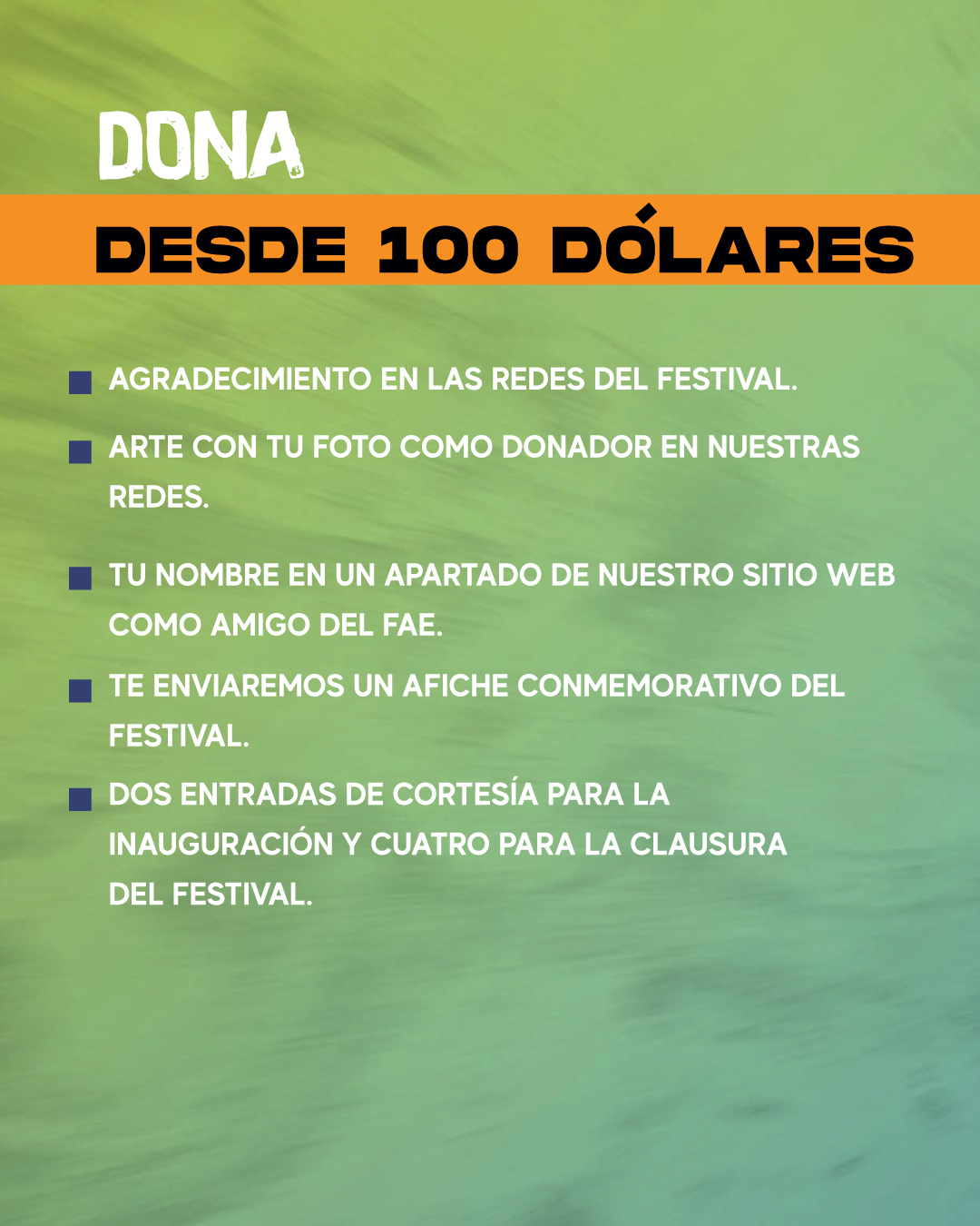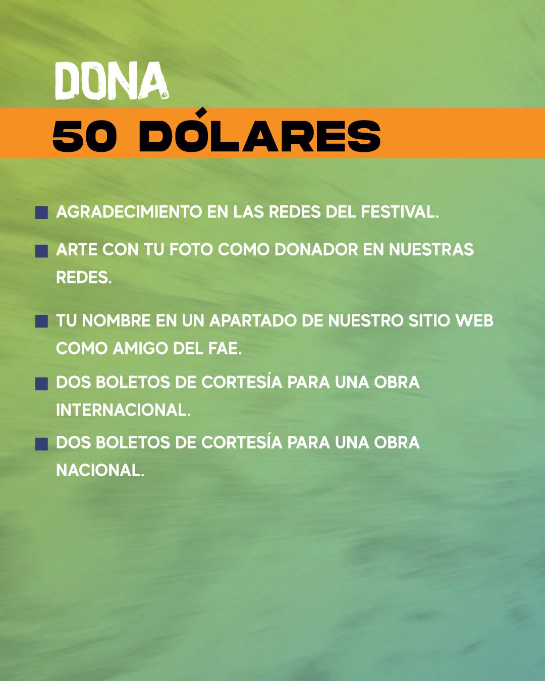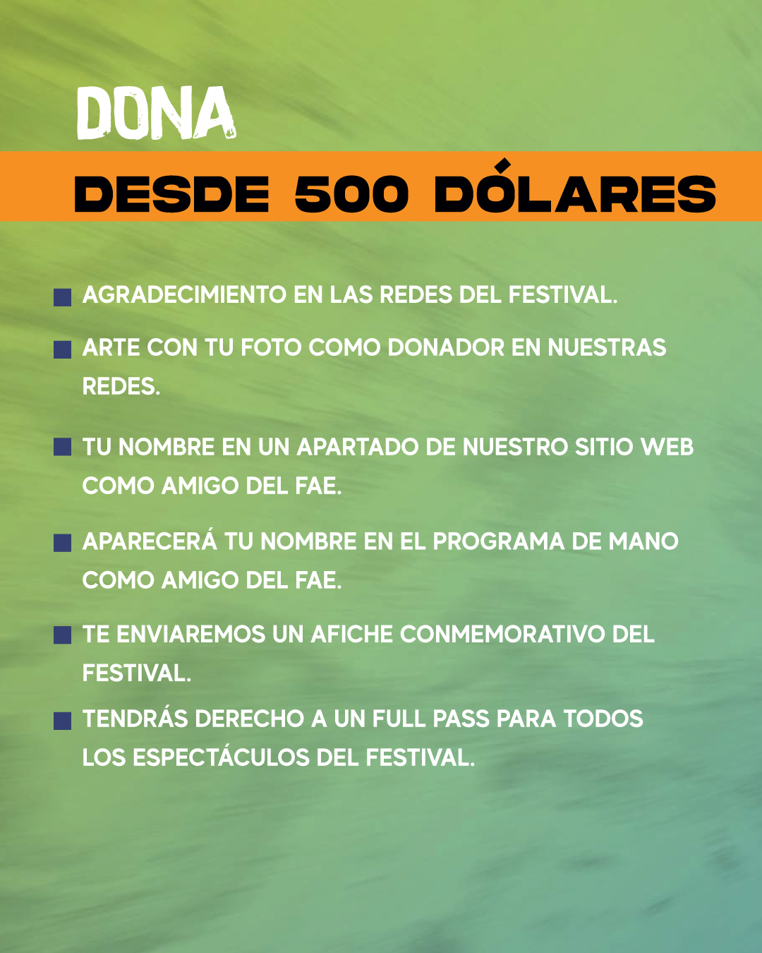 Con tu donación $10, $50, $100 o $500, podrán seguir desarrollando experiencias que impactan positivamente a niños, jóvenes, artistas emergentes y familias enteras.
