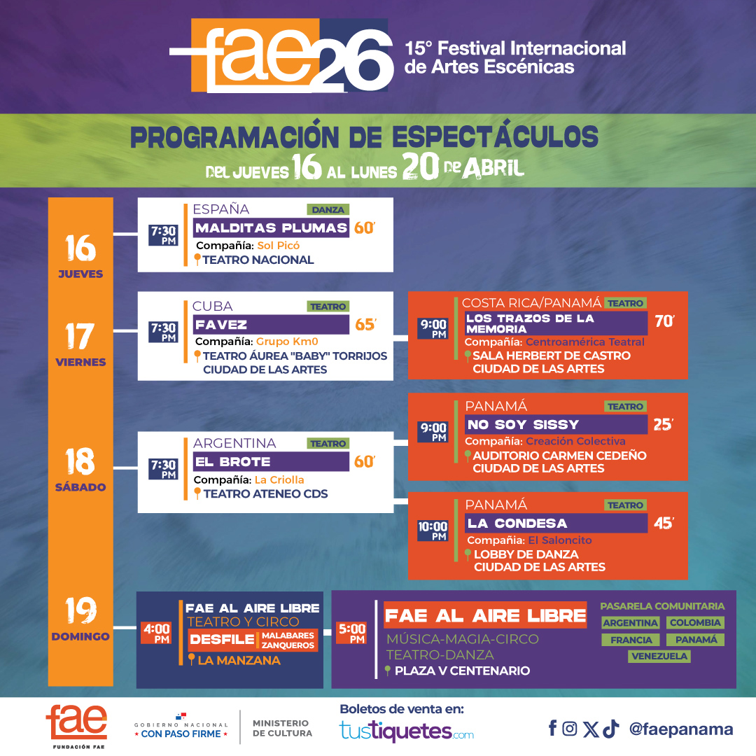 ¡Bienvenidos al Festival de Artes Escénicas de Panamá 2026! Este año, traemos una programación vibrante y diversa que celebra lo mejor del teatro, la danza y el arte escénico de Panamá y el mundo.